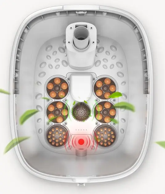 Також у цій моделі є теплий потік повітря, який Ви можете включити під час масажу в гідромасажній ванночці, або використовувати окремо. Потік теплого повітря зігріває ноги та прискорює кровообіг.