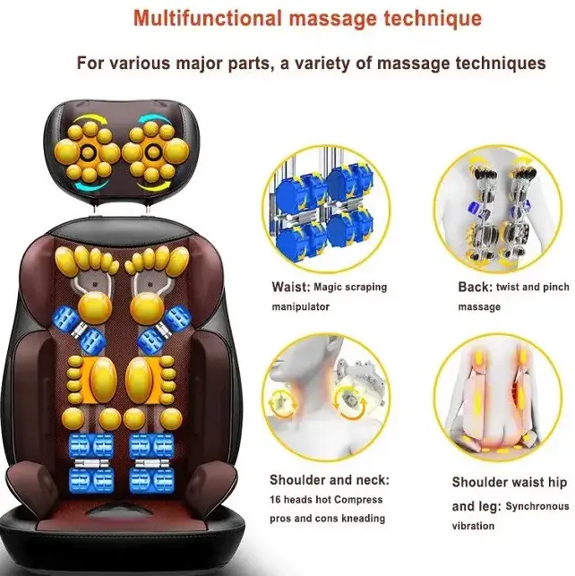– 16 масажних головок для комплексного масажу шиї та плечей. Такий масаж допомагає зняти фізичну напругу, біль голови, набряклість, підбадьорює Ваше тіло.