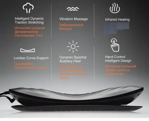 У масажері використовується динамічна зворотно-поступальна функція тяги, яка штовхає поперековий відділ хребта вгору, розтягує поперекові хребці та м’язи, знімає втому поперекових м’язів та зменшує біль у попереку та спині.