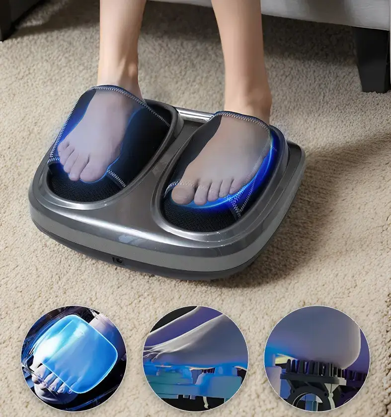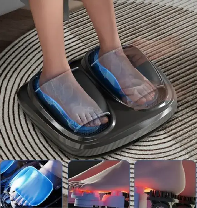Масажер використовується для усунення важкості у ногах, повертаючи ногам легкість та молодість. Масажні ролики інтенсивно розминають і розтирають Ваші стопи, функція підігріву додатково прогріває Ваші м’язи та посилює дію масажу, вібрація та компресія посилюють ефект масажу.