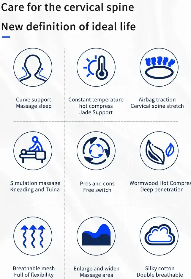 Унікальна масажна подушка, яка має 20 вбудованих масажних головок, 2 нефритові камені і традиційну східну ароматизацію з ароматного полину. У подушці є 3 температурні режими, які ефективно допомагають знімати головний біль, шиї і плечах, знімати стрес і втому.