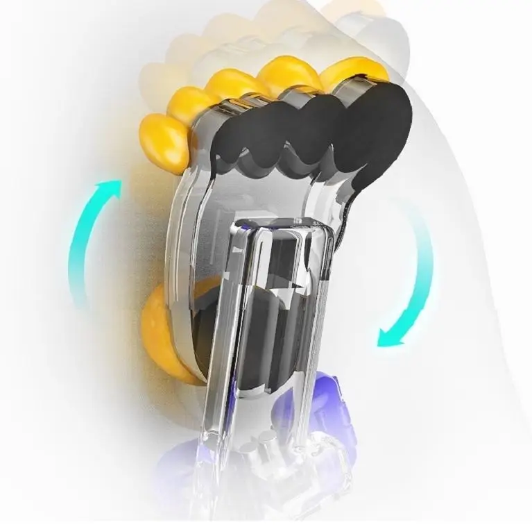 – масажує м’язи спини та шиї, розтягує та розминає їх;