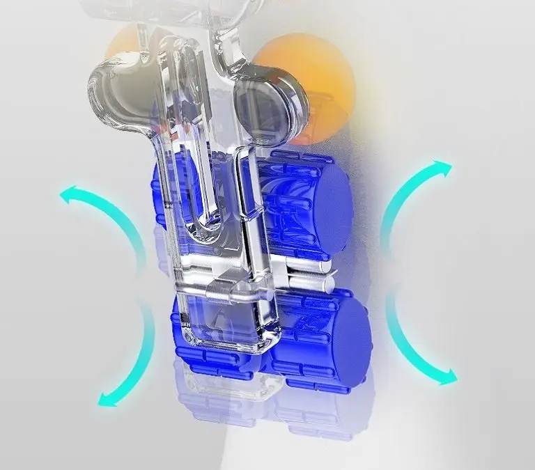 Для обробки області плечей і шиї масажера включаються валики, що знаходяться в цій області. Вони здійснюють поступальні та кругові рухи та масажують комірцеву зону. За допомогою цього масажу розслабляються м’язи шиї, що усуває мігрені та головний біль.