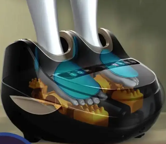 Розташований внизу складний роликовий трьохсекційний механізм дає змогу опрацьовувати пальці та суглоби, а повітряні подушки, які розміщені зверху, з боків і ззаду п’ят, призначені для стискання стопи та її бічних поверхонь. Доповненням до цих впливів для посилення ефективності масажу слугує вбудований інфрачервоний прогрів.