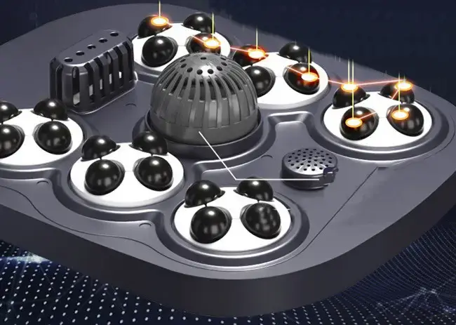 Масаж ступнів проводиться шляхом дії розташованих на дні пристрою спеціальних головок. Модель оснащена акупунктурною поверхнею, за допомогою якої масажна дія проводиться на біологічно активні точки, що є на ступнях ніг.